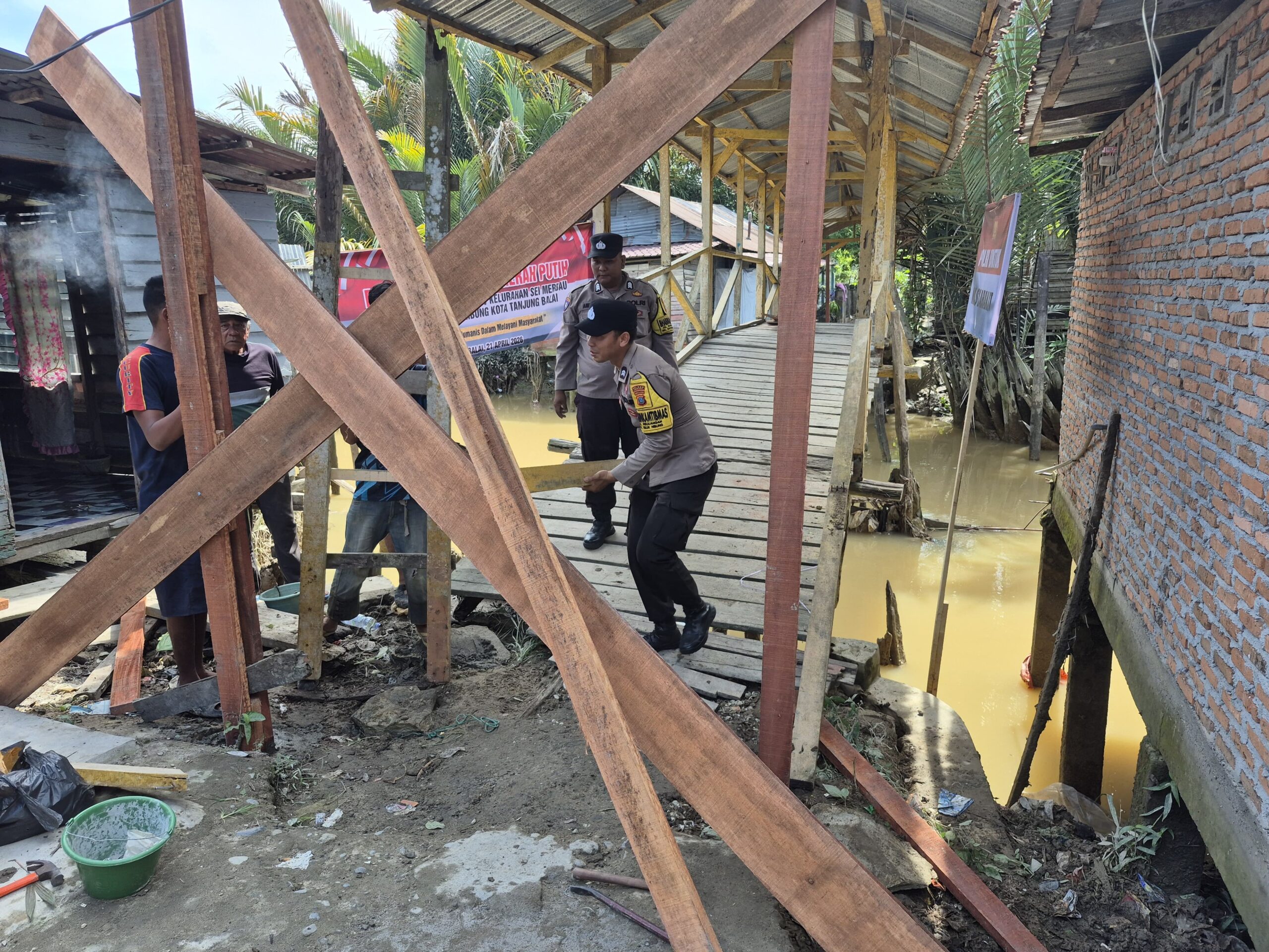 Dukung Program Pemerintah,Polres Tanjung Balai Survey Perbaikan Jembatan Merah Putih