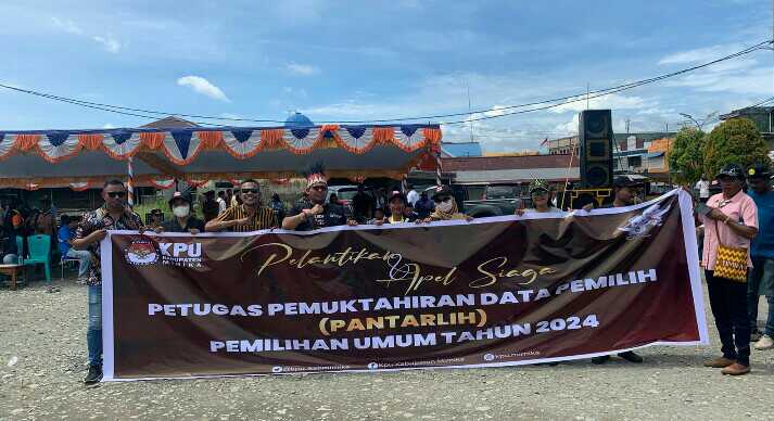 Jst-News. Com. Mimika. Minggu (18/2/23).- Pemerintah Kabupaten Mimika bersama KPU kabupaten Mimika menginisiasi Apel Kesiapan dan Pelantikan Petugas Pemutakhiran Data Pemilih (Pantarlih) Pemilu 2024 kabupaten Mimika di lapangan pasar lama. Penugasan pantarlih tersebut diharapkan dapat membantu membantu KPU Kabupaten Mimika melakukan pendaftaran serta pemutakhiran data pemilih untuk Pemilu 2024. Petugas Pantarlih yang dilantik merupakan hasil seleksi yang oleh Panitia Pemungutan Suara (PPS) tingkat kelurahan/kampung. Setelah dinyatakan lolos, langsung ditetapkan dan dilantik KPU kabupaten Mimika, Sabtu (18/2). Pelantikan tersebut dikemas dalam apel siaga sebagai bentuk kesiapan Pantarlih dan seluruh penyelenggara Pemilu untuk pelaksanaan tahap pencocokan dan penelitian (Coklit) pemutakhiran data pemilih….
