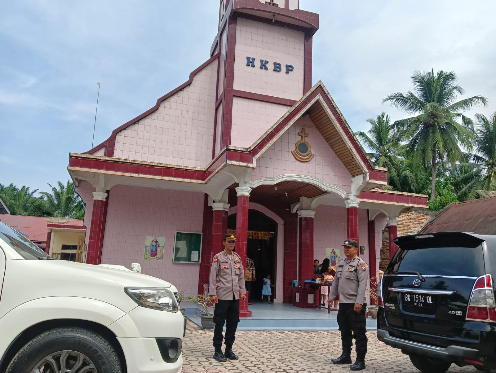 Waka Polsek Air Joman Berikan Pengamanan Gereja HKBP di Desa Punggulan