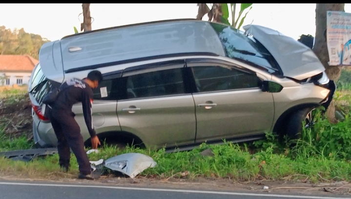 Ngantuk Berat Sebuah Daihatsu Terios Tabrak Pohon Hingga Ringsek Bagian Depan