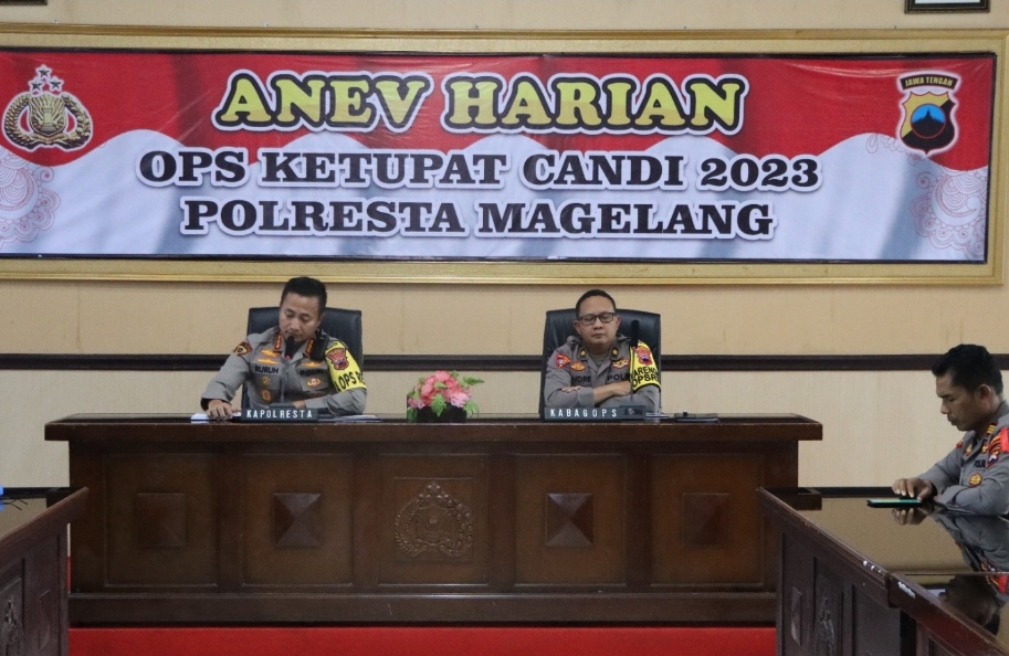 Jst-news.com |Magelang – Malam menjelang hari raya Idul Fitri, umat muslim ramai mengumandangkan takbir yang disebut takbiran. Tradisi tersebut diisi dengan melantunkan takbir dan berzikir sebagai upaya untuk menyambut hari kemenangan setelah menahan diri berpuasa selama sebulan. Untuk menjamin takbiran menjelang hari raya Idul Fitri 1444 Hijriah/ 2023 M dan juga Sholat Id dapat berlangsung khusyuk serta aman, Kapolresta Magelang Polda Jateng Kombes Pol Ruruh Wicaksono S.I.K, S.H, M.H melaksanakan Rakor bersama Para Kasatgas OKC (Ops Ketupat Candi) 2023, Kapolsek Jajaran, perangkat OKC dan para Kapospam serta Kaposko OKC di Aula Mapolresta Magelang pada, Kamis (29/4/2023) siang hari. Masing masing…