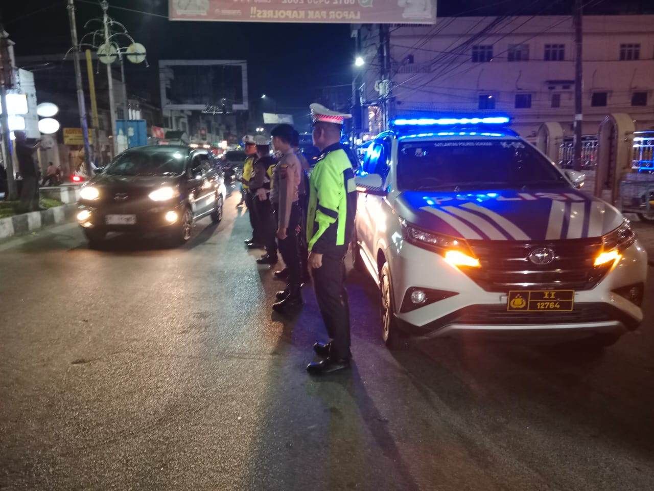 Jaga Situasi Inti Kota Kisaran, Satlantas Polres Asahan Gelar Patroli Blue Light