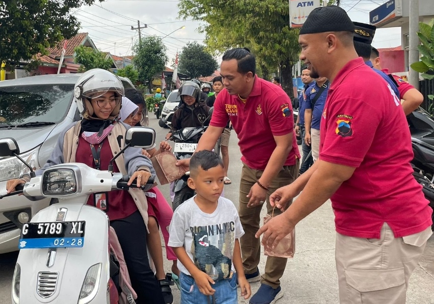 Polisi Batang Bagikan Takjil Gratis kepada Pengguna Jalan dalam Program Rutin Ramadan.