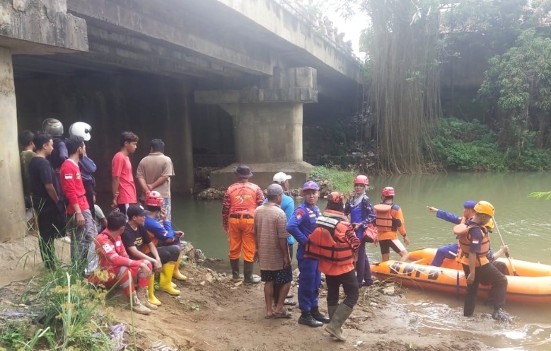 Gunakan Perahu Karet, Petugas Gabungan Lakukan Pencarian Pria Nekat Loncat Ke Sungai