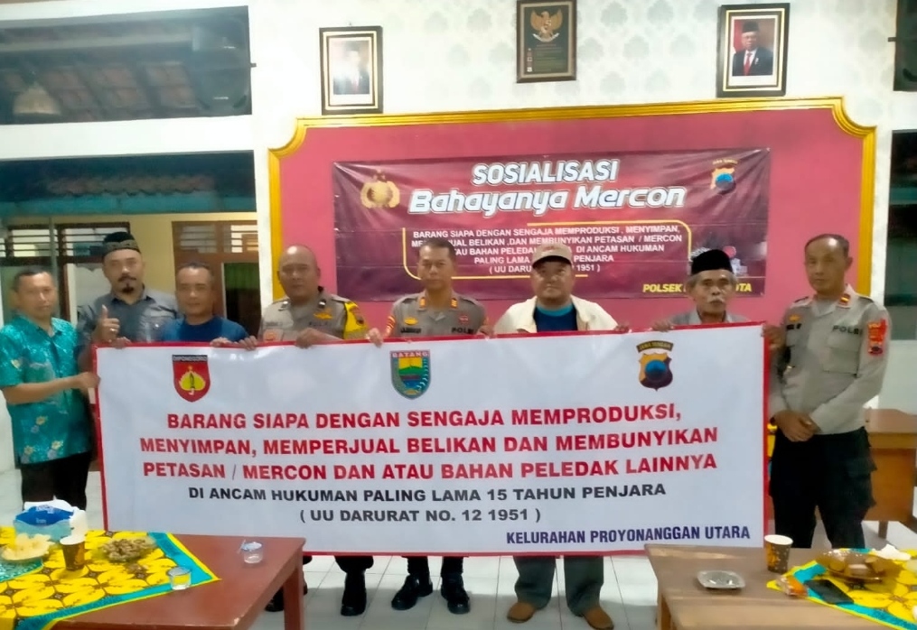 Jst-news.com | Batang – Kapolsek Batang Kota Polres Batang AKP Akhmad Almunasifi mengajak para tokoh masyarakat untuk menyosialisasikan larangan penggunaan petasan atau mercon kepada warga. Hal ini sebagai upaya pencegahan penggunaan petasan saat lebaran. Saat ditemui pada Sabtu (1/4/2023), Kapolsek Batang Kota Polres Batang menyatakan bahwa Polsek bersama Satbinmas telah melakukan Sosialisasi Binluh kepada ketua RT/RW, tokoh masyarakat, dan pemuda karang taruna di kelurahan maupun desa di Kecamatan Batang. “Tadi malam, kami bersama Satbinmas menyosialisasikan larangan penggunaan petasan di Kelurahan Proyonanggan Utara dan Karanganyar,” jelasnya. Kapolsek menjelaskan bahwa tindakan tersebut dapat dijerat dengan Undang-undang Darurat No. 12 tahun 1951 dengan…