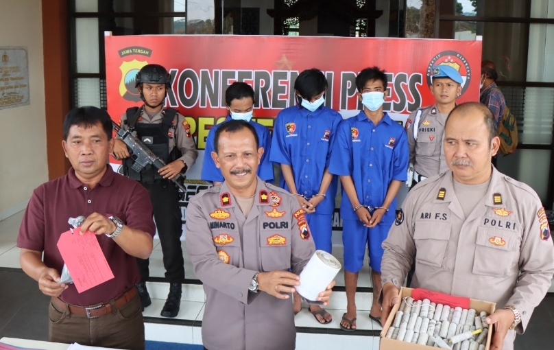 Jst-news.com |TEMANGGUNG – Polres Temanggung, Polda Jateng berhasil mengamankan 3 tersangka pembuat dan penjual bahan mercon dan dari para tersangka dapat diamankan 10,7 Kilogram bubuk mercon. Kapolres Temanggung AKBP Agus Puryadi melalui Wakapolres Kompol Minarto kepada awak media menerangkan ketiga tersangka yakni IK (30) warga Kedu, YA (18) dan WA (20) keduanya merupakan warga Gemawang Temanggung. “Ketiga tersangka di tangkap petugas di dua tempat yang berbeda yaitu Kandangan dan Kota,” Terang Minarto, Jumat (31/3). Lebih lanjut Kompol Minarto mengatakan IK di amankan petugas saat akan melakukan transaksi obat mercon tepatnya di jalan Pahlawan Temanggung dan dari tangan tersangka diamankan barang…