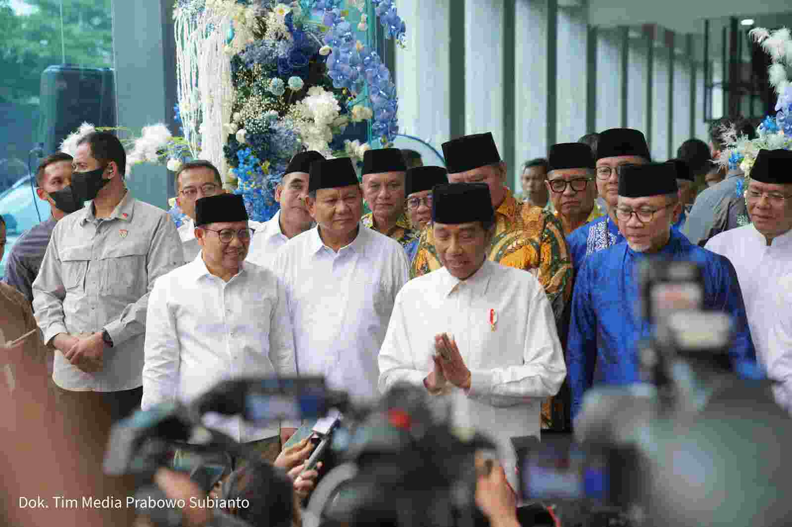 Jst-News.com, Jakarta – Ketua Umum (Ketum) Partai Gerindra Prabowo Subianto menghadiri acara ‘Silaturahmi Ramadhan’ yang digelar di kantor DPP PAN. Senin (3/4/2023). Dalam acara tersebut, Prabowo duduk berdampingan dengan Presiden Joko Widodo (Jokowi), Ketum PKB Muhaimin Iskandar, Ketum Golkar Airlangga Hartato serta Plt Ketua Umum PPP Mardiono.Terlihat momen keakraban di acara silahturahmi ini. Dalam sambutannya, Ketum PAN Zulkifli Hasan mengungkapkan pujiannya kepada Prabowo. Di hadapan Jokowi, Zulkifli yang menjabat sebagai Menteri Perdagangan ini menyebut Prabowo sebagai sosok yang tak kenal lelah berjuang demi NKRI. Sosok Menteri Pertahanan Prabowo, disebut Zulkifli tidak perlu diragukan. “Pak Prabowo tidak diragukan, Pak. Tidak kenal…