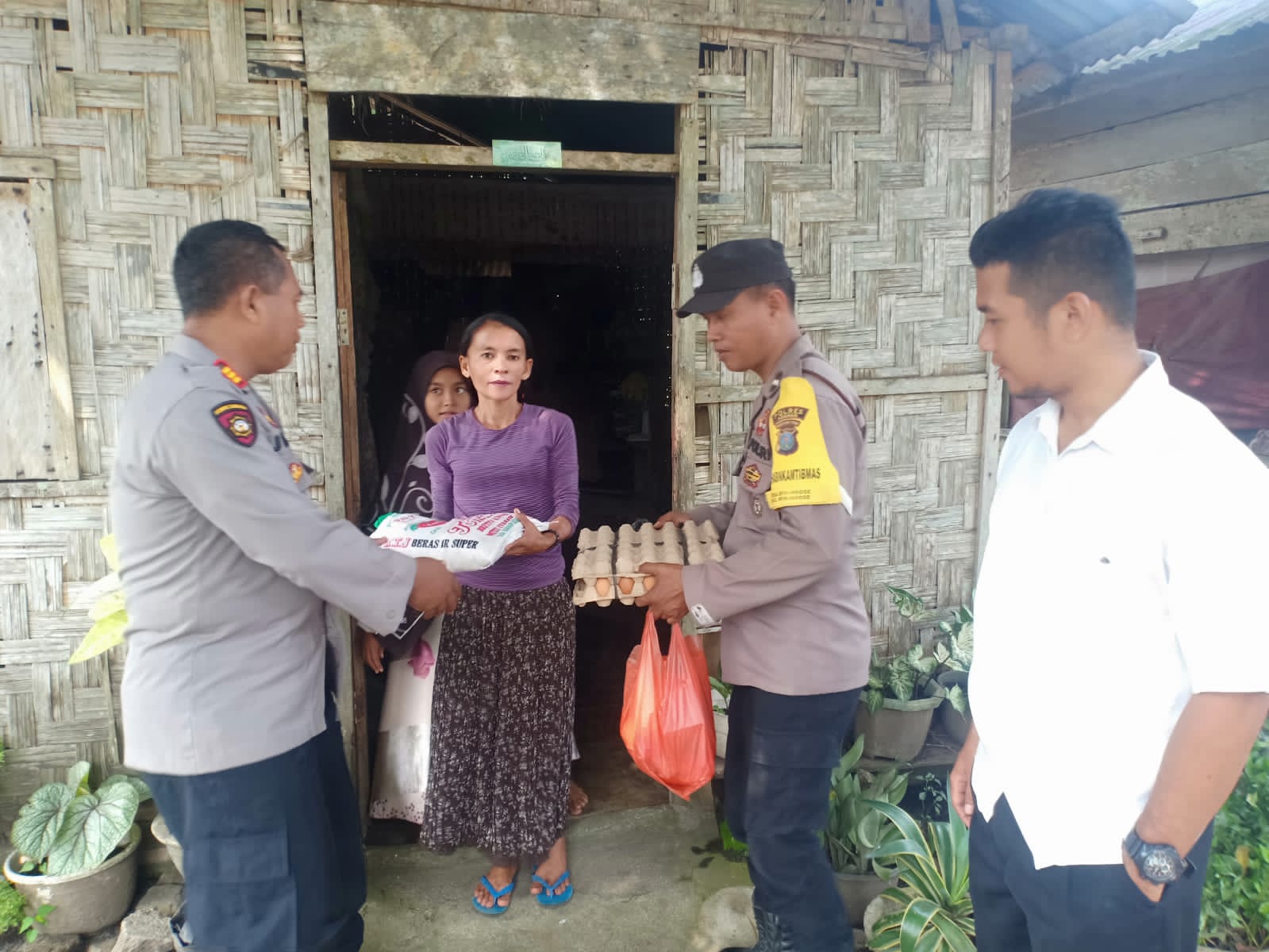 Bhabinkamtibmas Polsek Bandar Pasir Mandoge.Berikan Bansos Berupa sembako