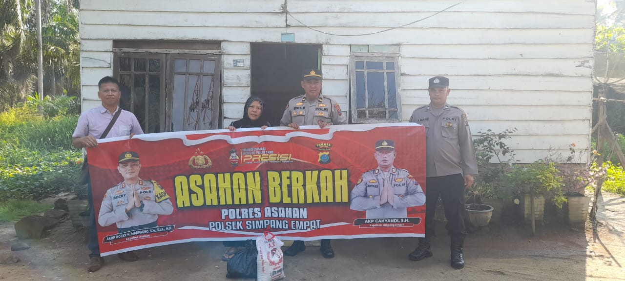 Melalui Program Berkah, Polsek Simpang Empat Bagi Sembako ASAHAN | Personel Polsek Simpang Empat Polres Asahan yang bertugas di Kecamatan Simpang Empat Aiptu Abdul Majid, Ipda Eddi Basuki, dam Aiptu R. Tarigan laksanakan kegiatan Bakti Sosial dengan Program Berkah (Berdoa dan Bersedekah) melalui Jemari Sipope Senin (05/06/2023). Kegiatan Pemberian Bansos tersebut dilakukan Personel Polsek Simpang Empat Polres Asahan dengan cara door to door, untuk memberikan Paket Bantuan Sosial kepada Ibu Nur Dusun VII Sipaku Area Kecamatan Simpang Empat Kabupaten Asahan. Kegiatan Bansos bertemakan Berkah (Berdoa dan Bersedekah) melalui Jemari Sipope, dalam rangka membantu warga masyarakat yang kurang mampu. Kapolres Asahan…