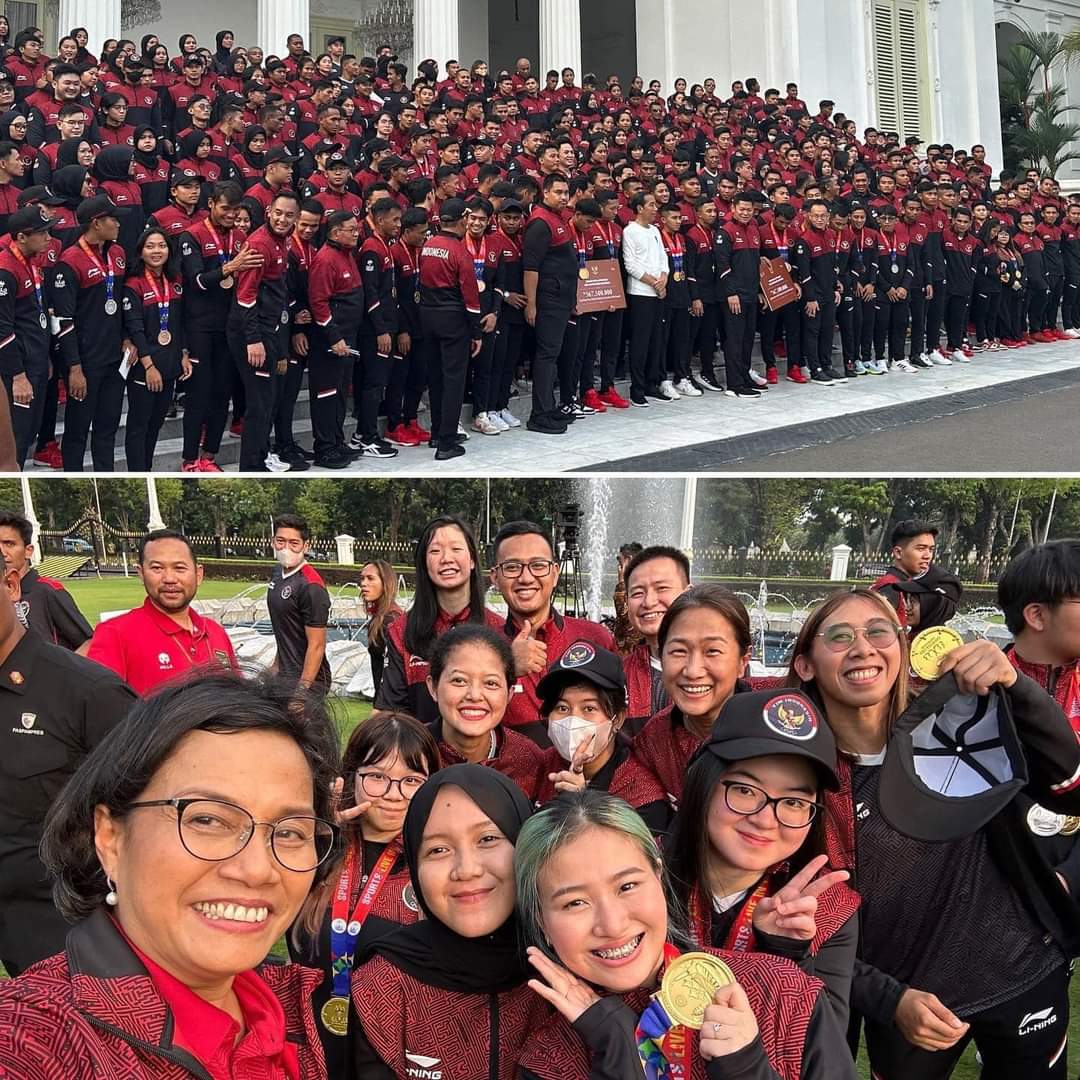 JST-News.com – Menteri Keuangan Sri Mulyani Indrawati Senang dan bangga melihat wajah-wajah bahagia para Atlet Indonesia yang berhasil meraih 276 medali di Sea Games Kamboja 2023 – dengan rincian : 87 emas, 80 perak, 109 perunggu. Capaian ini jauh melebihi target awal sebesar 69 emas. Presiden dan pemerintah memberikan penghargaan sangat tinggi atas prestasi dan daya juang para atlet Indonesia. Mereka mampu mengangkat dan mengharumkan nama Indonesia. di Halaman Istana Merdeka Presiden Jokowi menyampaikan bonus bagi seluruh atlet berprestasi beserta pelatih dan asisten pelatihnya. Bonus yang akan dianggarkan APBN #uangkita adalah: Untuk Individu Emas : Rp 525 juta, Perak Rp…