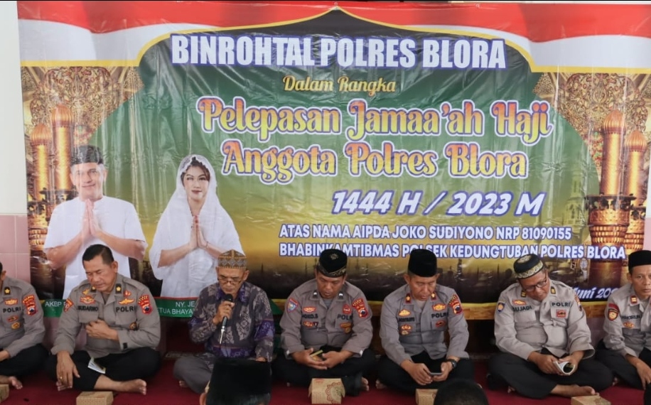 Jst-news.com |Polres Blora – Polda Jateng – Dalam rangka Pelepasan Jama’ah Hai Anggota Polres Blora, Wakapolres Blora Pimpin Kegiatan Do’a bersama dan Binrohtal Polres Blora di Masjid Al Istiqomah Polres Blora, Kamis (8/6/2023). Kompol Riwayat Sosiyanto, S.H., M.Si., Wakil Kepala Kepolisian Resor Blora menyampaikan selamat dan semoga lancar dalam menjalankan Ibadah Haji di Tanah Suci Mekkah kepada Anggota Polres Blora Aipda Sudiyono, Bhabinkamtibmas Polsek Kedungtuban yang dijadwalkan berangkat bersama Jama’ah haji lainnya dari Kabupaten Blora. “Ibadah Haji adalah salah satu dari lima Rukun Islam, dan akan menyempurnakan Ibadah kita. Bila dilakukan secara Ikhlas dan Khusyuk, InsyaaAllah akan jadi haji yang…
