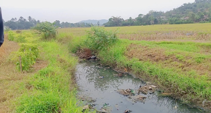 Banyaknya warga Keluhkan Aroma Bau Busuk Limbah Ayam Potong Di Aliran Pesawahan Mereka