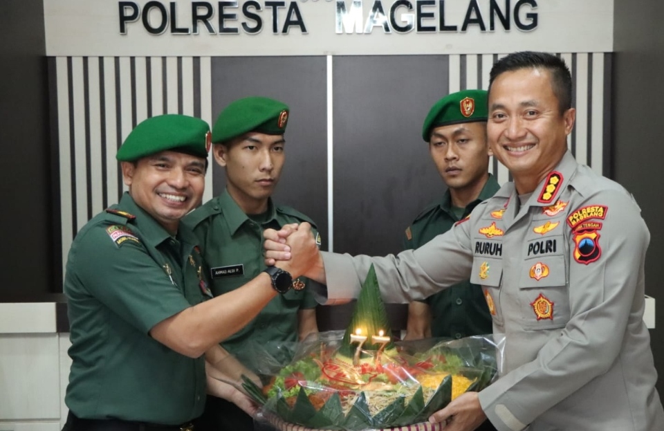 Hari Bhayangkara, Puluhan Personel TNI, Kejaksaan dan Pemda, Bawa Tumpeng Datangi Polresta Magelang