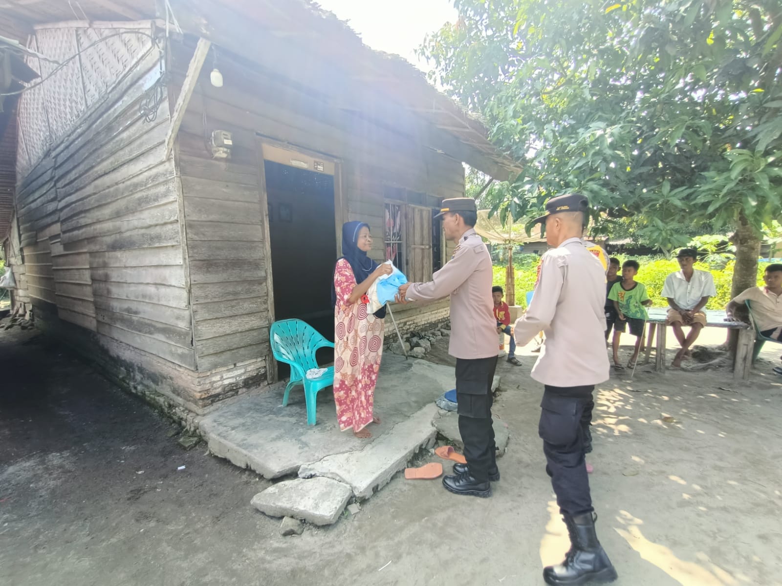 Polsek Air Joman Perduli, Bagi Sembako Kepada Seorang Janda ASAHAN | Peka dan peduli terhadap keadaan salah satu warga binaanya, Kapolsek Air Joman, bersama Personel Polres Asahan berikan bantuan sosial ke warga bernama Kasian (67) Seorang janda yang memiliki 4 (empat) orang anak Selasa (04/07/2023). Kapolres Asahan AKBP Rocky H Marpaung, SH, SIK, MH melalui Kapolsek Air Joman AKP T Lawolo mengatakan bahwa upaya menolong dan membantu masyarakat tidak lepas dari peran Bhabinkamtibmas yang merupakan garda terdepan dalam membantu dan peduli terhadap sesama dan kepada masyarakat. “Tidak hanya membina dan menjaga ketertiban dan kemananan desa, Bhabinkamtibmas juga memberikan pelayanan terbaiknya…