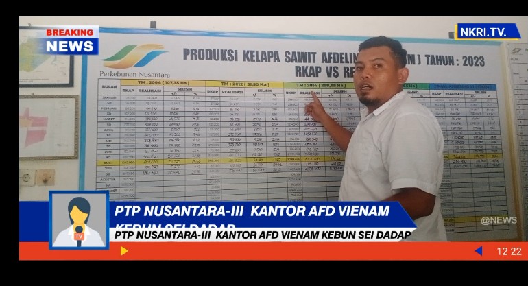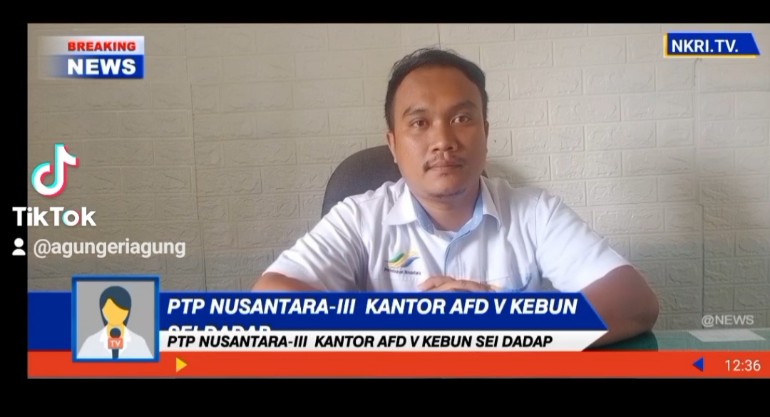 Adeling VI Kebun Sei Dadap 2014 TM Peringkat Nomor 1 Terbaik Untuk PTPN III. hasil produksi sangat baik. NKRI JST-News TV Asahan – Afdeling VI Kebun Sei Dadap merupakan salah satu Kebun yang mempunyai peringkat terbaik hasil panen, seperti yang di utarakan Asisten Afdeling VI Rifky Anandika saat di temui di ruang kerjanya, Selasa 8 Agustus 2024 sekira pukul 10.00 wib. Menurut Rifky Anandika Asisten Afdeling VI ini, areal saat ini yang di kelola di bawah pengawasannya untuk Tanaman Menghasilkan (TM) seluas 601,15 ha dan Tanaman Belum Menghasilkan seluas 137,65 ha dan untuk jumlah karyawan sebanyak 45 orang terdiri 30…