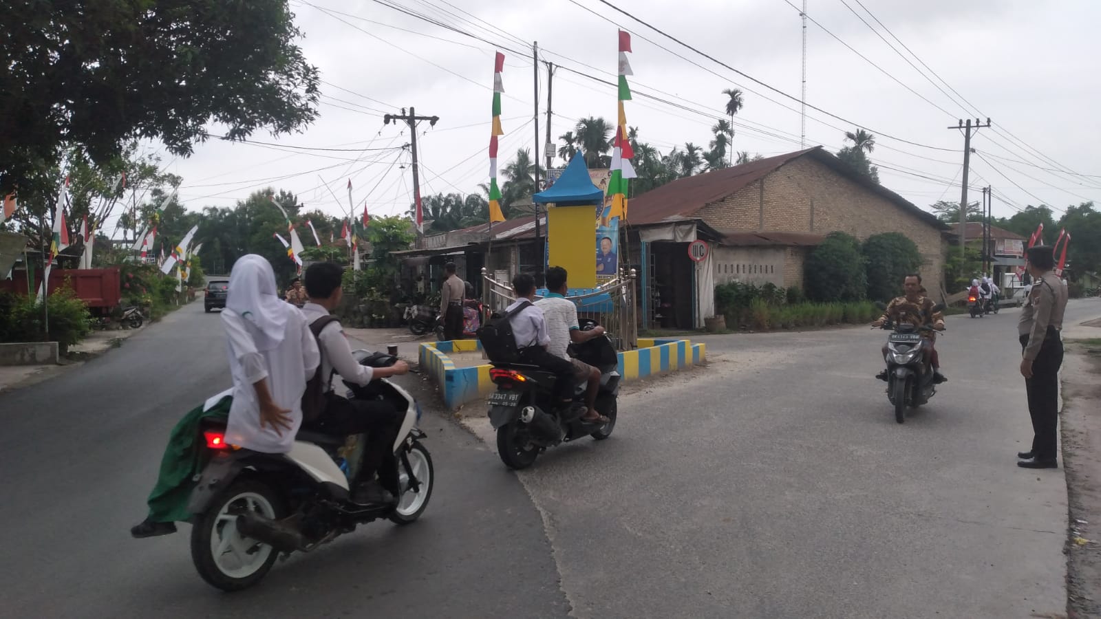 Personel Polsek Bandar Pulau Pengaturan Lalulintas di Pajak Pagi Desa Aek Songsongan