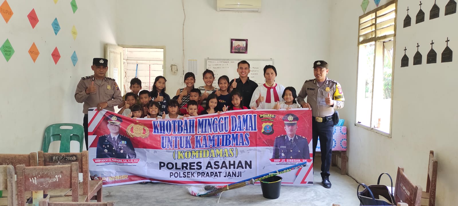 Laksanakan Minggu Kasih, Personel Polsek Prapat Janji Serahkan kain pel dan sapu lantai ASAHAN | Polsek Prapat Janji Polres Asahan menggelar Khotbah Minggu Kasih Untuk Kamtibmas di Gereja HKBP Sei Silau Desa Sei Silau Barat Kecamatan Setia Janji Kabupaten Asahan Minggu (03/09/2023). Minggu Kasih ini dilaksanakan oleh Personel Polsek Prapat Janji Polres Asahan Aiptu JS Siregar dan Brigadir R Sirait, turut hadir Guru Sekolah Minggu Gereja HKBP Sei Silau beserta Anak Sekolah Minggu Gereja HKBP Sei Silau berjumlah 25 Orang. Dalam kesempatan tersebut Personil Polsek Prapat Janji Aiptu JS Siregar menyampaikan pesan pesan kamtibmas agar Anak-anak Sekolah Minggu agar rajin…