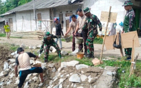 Antisipasi Terjadinya Longsor Satgas TMMD Ke 119 Membangun Turap Di Kampung Embung Ceger