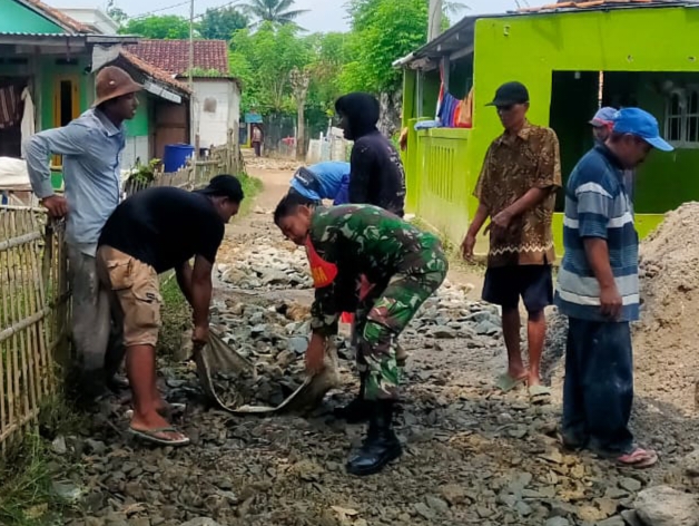 Peduli Perbaikan Jalan Sebelum Lebaran Datang Babinsa Bantu Warga Kampung Babakan Rengas