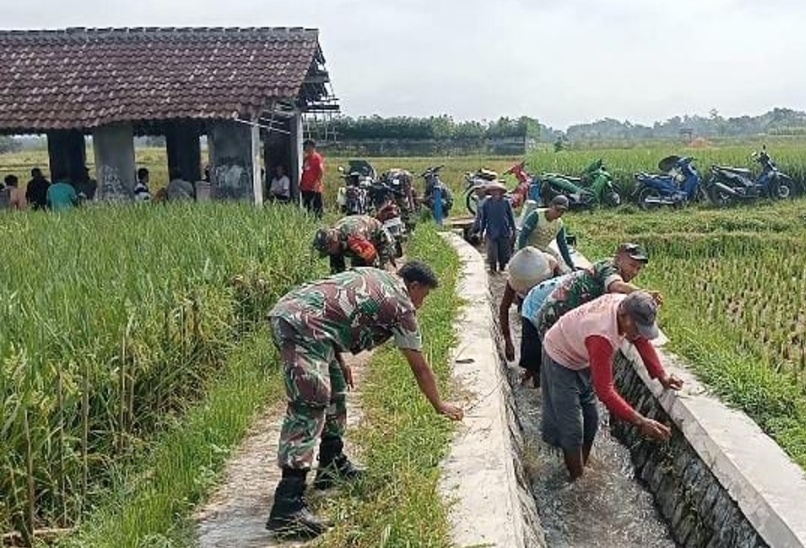 Peduli Kebersihan Lingkungan, Anggota Pos Selopuro Ajak Warga Bersihkan Saluran Irigasi