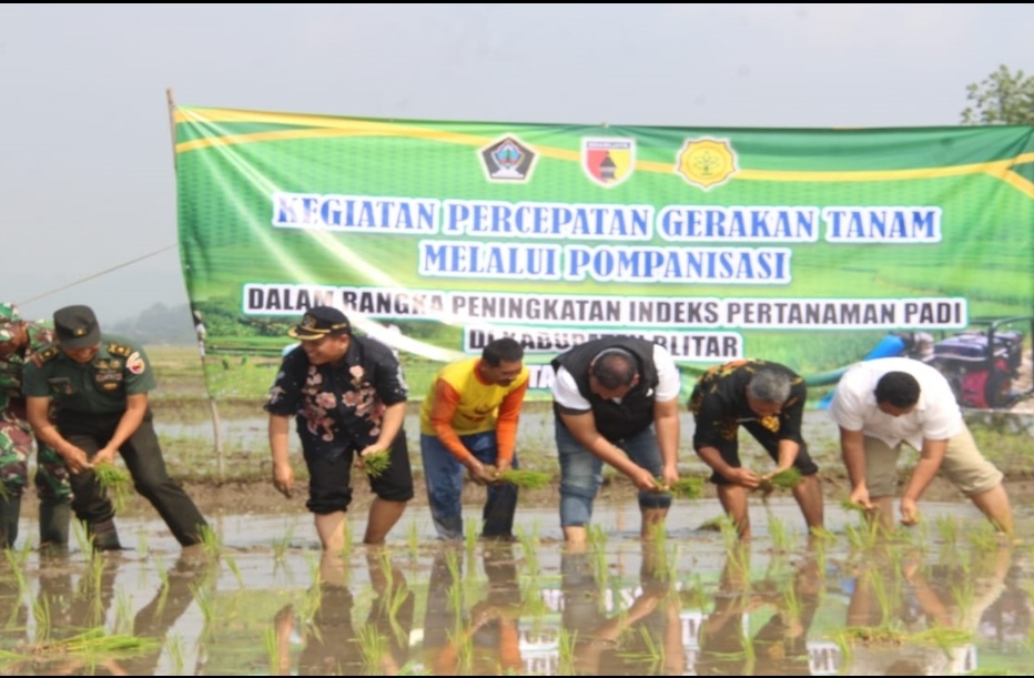 JST-NEWS.COM |Blitar – Dalam upaya mensukseskan program ketahanan pangan di wilayahnya, Kodim 0808/Blitar terus memberikan dukungan penuh dalam kegiatan percepatan gerakan tanam melalui sistem pompanisasi, guna meningkatkan indeks pertanaman padi di Kabupaten Blitar pada musim tanam Tahun 2024. Salah satu lokasi yang menjadi fokus kegiatan ini adalah di Kelompok Tani Sidodadi, yang berlokasi di Kelurahan Sutojayan Kecamatan Sutojayan Kabupaten Blitar, Kamis (25/4/2024). Kegiatan percepatan gerakan tanam melalui pompanisasi merupakan langkah strategis untuk meningkatkan produktivitas pertanian, khususnya pada sektor penanaman padi. Dengan penerapan sistem pompanisasi, diharapkan efisiensi penggunaan air irigasi dapat ditingkatkan, sehingga hasil panen padi dapat meningkat secara signifikan. Pasi…