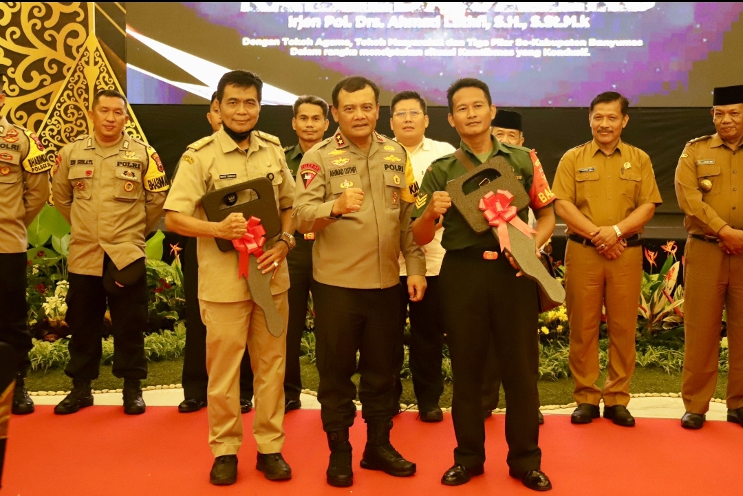 JST-NEWS.COM |Kabupaten Banyumas-Polda Jateng| Irjen Pol. Ahmad Luthfi bertempat di Hastina Pura Convention Hall Hotel Java Heritage Purwokerto melaksanakan Silaturahmi Kamtibmas dengan Forkompimda, Tokoh Masyarakat Tokoh, Tokoh Agama dan Ormas se-Kab. Banyumas. Senin ( 29/4/24) Turut hadir mendampingi Kapolda Jateng antara lain Brigjen TNI Mohammad Andy Kusuma (Kapusada TNI / Danrem 071/WK), PJU Polda Jateng, serta Kapolresta Banyumas dan jajaran nya. Dalam sambutanya Irjen Pol Ahmad Luthfi menyampaikan bahwa rasa aman tidak terjadi begitu saja namun melalui proses dan tahapan tindakan Kepolisian “ dari hati kecil saya yang terdalam mari kita renungkan, bahwa rasa aman yang terjadi selama ini tercipta…