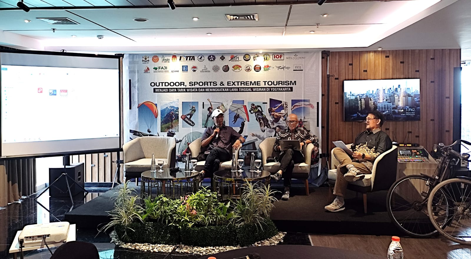 JST-NEWS.COM. | DIY Wakil Ketua Umum Kamar Dagang dan Industri (KADIN) DIY Bidang Pariwisata, Ir. Arif Effendi, meyakini bahwa wisata olahraga ekstrem bisa memperpanjang masa tinggal wisatawan mancanegara di Yogyakarta. Keyakinan ini diungkapkan dalam acara Focus Group Discussion (FGD) yang dihadiri oleh 40 peserta, termasuk Ketua KONI DIY, Ketua Komunitas Olahraga Ekstrem DIY, Badan Promosi Pariwisata Daerah, serta berbagai pelaku usaha pariwisata dari Asita, PHRI, HPI, hingga GIPI. Turut hadir pula akademisi, peneliti pariwisata, serta awak media di Hotel Royal Malioboro, Jalan Pasar Kembang, Yogyakarta, pada Selasa (21/5/2024). Dengan tema “Outdoor, Sports & Extreme Tourism Menjadi Daya Tarik Wisata dan…