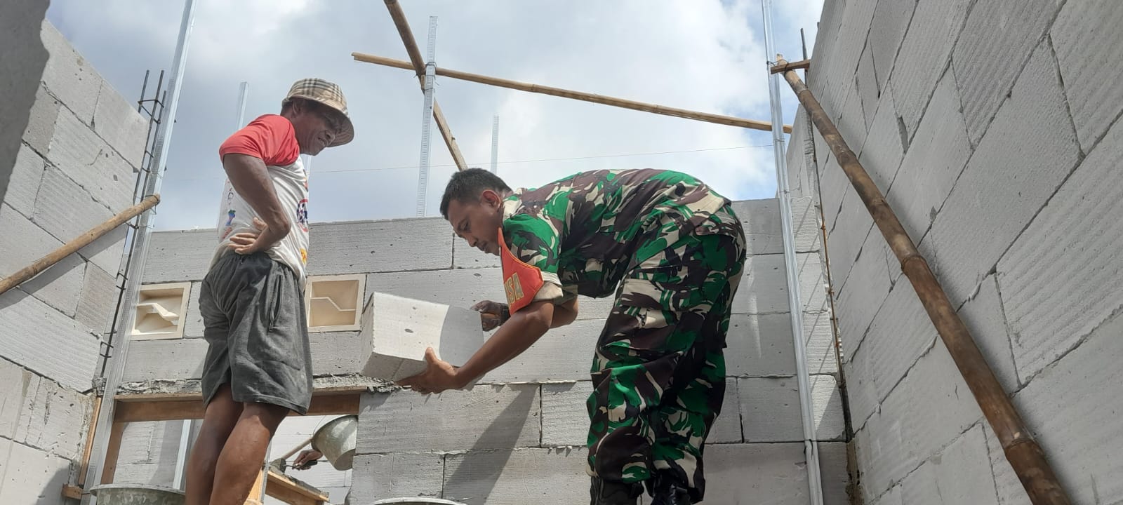 Dekat Dengan Masyarakat Babinsa Bantu Pembangunan Rumah