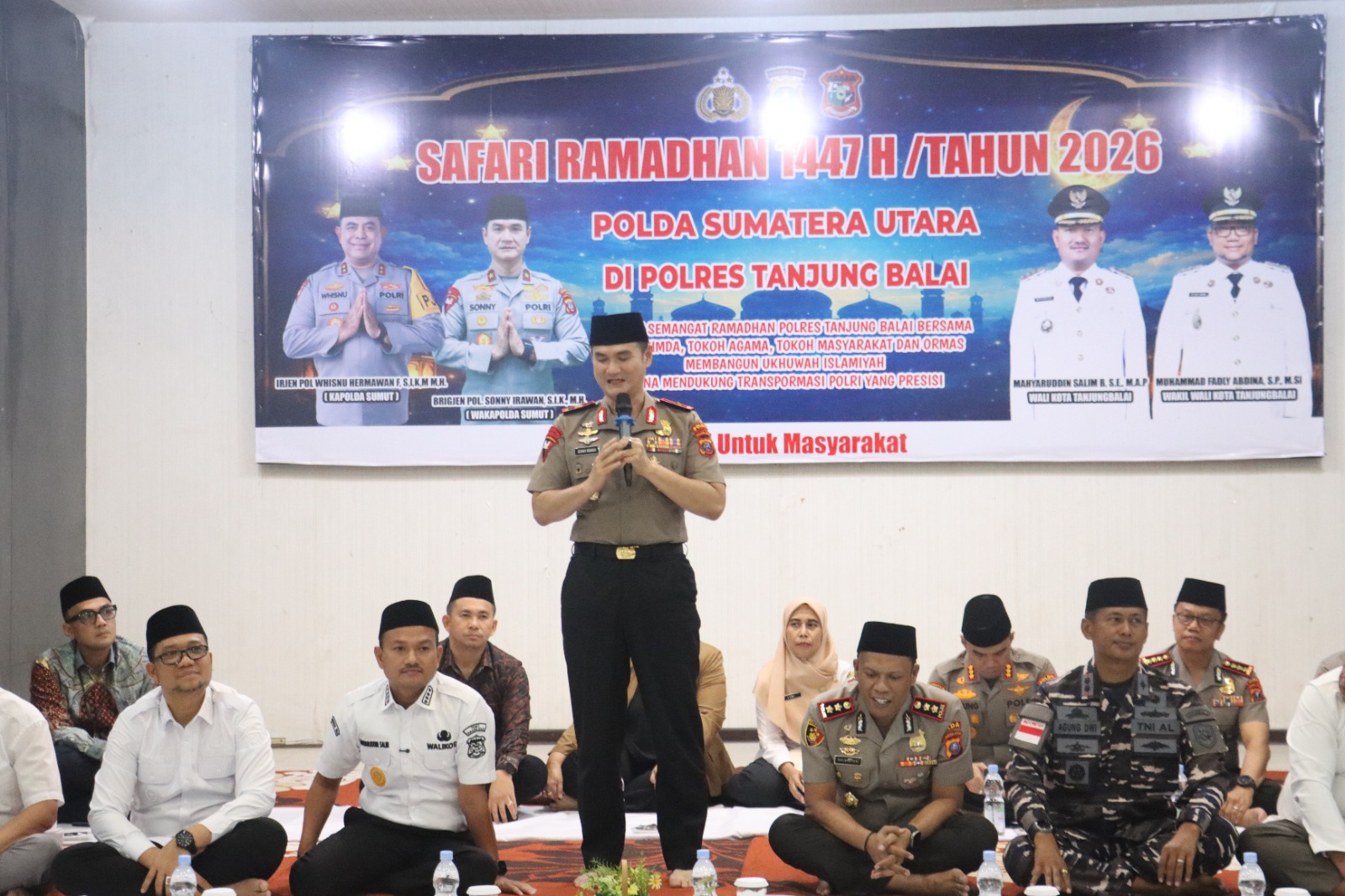 Indonesia JST-News TANJUNGBALAI – Dalam rangka memperkuat ukhuwah Islamiyah dan sinergi antara kepolisian dengan masyarakat, Polda Sumatera Utara menggelar kegiatan Safari Ramadhan 1447 H di wilayah hukum Polres Tanjungbalai, Rabu (11/3). Acara yang dipusatkan di Pendopo Rumah Dinas Walikota Tanjungbalai ini dihadiri langsung oleh Wakapolda Sumut, Brigjen Pol Sonny Irawan, S.I.K., M.H., beserta jajaran pejabat utama Polda Sumut, Kapolres Tanjungbalai AKBP Welman Feri, jajaran Forkopimda, pimpinan organisasi keagamaan seperti MUI, NU, Muhammadiyah, Alwasliyah, serta perwakilan pemuda dari berbagai organisasi. Walikota Tanjungbalai, Mahyaruddin Salim Batubara, dalam sambutannya menyampaikan apresiasi mendalam atas kehadiran rombongan Polda Sumut. Ia menekankan bahwa stabilitas keamanan yang…