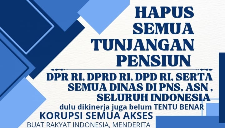 JST-NEWS | Pelancaran Skala Efisiensi Digalakan!!! “Penghapusan Semua Tunjangan Pada Pensiun – Tak Lagi’ Dapat Hak Gaji”, Dari Anggaran APBN / APBD Dari Pemerintah RI” dikarenakan pemangkasan ini secara priority sudah beristirahat dirumah lebih mulia tanpa adanya pemborosan segala hal (4/10/2025) Terbit Perpers Terbaru Untuk DPR RI, DPRD RI, DPD RI, Hingga PNS/ASN Di Pemerintahan RI – ini semua dikhususkan bagi masyarakat umum di Indonesia masih banyak yang lebih membutuhkan. maka signifikan terdengar semua oleh akses PNS/ASN dihilangkan dalam masa pensiun (dapat hak dan kewajiban). cukup dalam masa bakti saja, dan kematian dari pihak keluarga diwaktunya tercatat di catatan sipil. peristiwa ini, cakupan mengenai pemerintahan RI harus berjalan semestinya untuk kemaslahatan bersama, ketika bekerja cukup baik-baik saja dikurun waktu yang telah ditentukan peraturan terbaru Perpers RI. semua ada penyetaraan profesi…