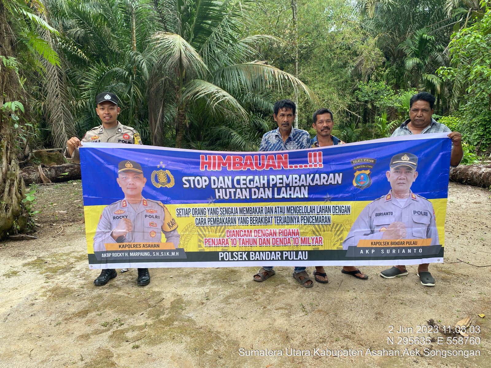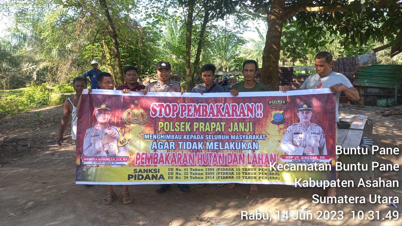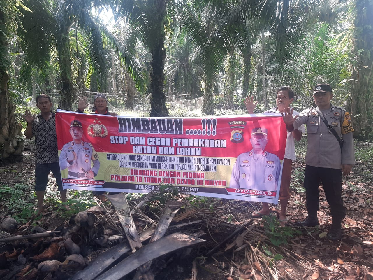 Sosialisasi tentang Karhutla, Ini Pesan Kapolsek Simpang Empat ASAHAN | Bhabinkamtibmas Polsek Simpang Empat, Polres Asahan, menggelar sosialisasi tentang Kebakaran Hutan dan Lahan (Karhutla) di Dusun III Desa Sei Lama Kecamatan Simpang Empat Kabupaten Asahan, Selasa (20/06/2023). Kapolsek Simpang Empat AKP Cahyadi didampingi mengatakan, sosialisasi ini salah satu langkah preventif untuk memberikan pemahaman kepada masyarakat akan dampak dan bahaya Karhutla. “Kita berharap pesan yang disampaikan dalam diimplementasikan sehingga ke depan warga tidak lagi membakar lahan maupun hutan untuk bercocok tanam karena dapat merusak lingkungan dan kesehatan bagi warga sekitar,” kata Kapolsek.
