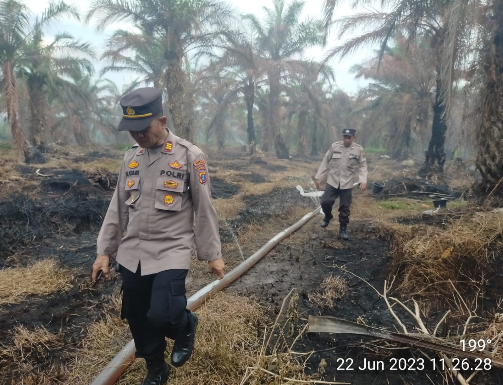 Kapolsek Sei Kepayang Lakukan Pengecekan Titik Api Dari Aplikasi Lancang Kuning ASAHAN | Kapolsek Sei Kepayang AKP Sutari beserta Personel Polsek Sei Kepayang melakukan pengecekan serta verifikasi di Desa Pertahanan Patok 60 Kecamatan Sei Kepayang Kabupaten Asahan lahan kelapa Sawit milik Taufik tentang titik api yang muncul di aplikasi lancang kuning Kamis (22/06/2023). Dari Hasil pantauan dari Aplikasi Lancang Kuning ditemukan ada 2 titik api di wilayah hukum polsek Sei Kepayang namun masih 1 titik sudah termonitor. Setelah di lakukan pengecekan ke lokasi diketahui bahwa titik api berada di lahan masyarakat milik Taufik tepatnya di Desa Pertahanan Patok 60 Kecamatan…