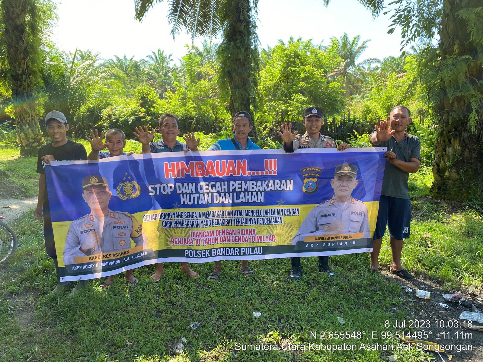 Personel Polsek Bandar Pulau Pantau Titik Api dari Aplikasi Lancang Kuning ASAHAN| Personel Polsek Bandar Pulau Beserta perangkat desa Tangga Kadus Dusun 3 bergerak melanjutkan pencarian titik hotspot atau titik api medium yang terpantau kamera satelit aplikasi lancang kuning Rabu (05/07/2023). Dalam Pelaksanaan Patroli tersebut Personil Polsek berkoordinasi dengan Kepala Desa dan kadus 3 serta masyarakat setempat untuk mencari jalan menuju adanya titik api seperti yang ada di aplikasi Lancang kuning. Polsek Bandar Pulau melakukan sosialisasi dan himbauan kepada masyarakat Dusun 3 Desa tangga Kecamatan Aek Songsongan Kabupaten Asahan agar tidak membakar hutan / lahan. Melakukan kordinasi dengan kepala dusun…