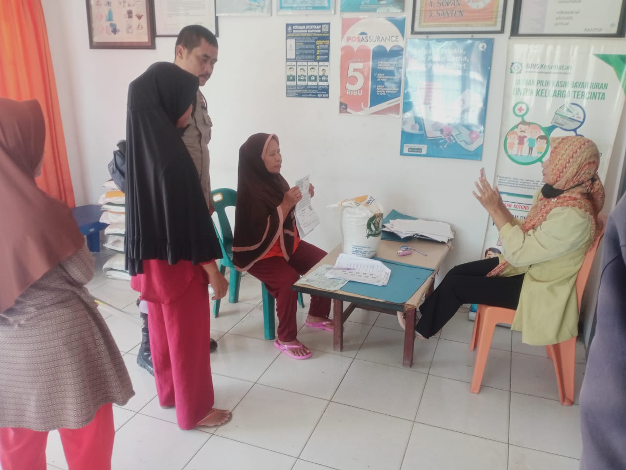 Bhabinkamtibmas Polsek Simpang Empat Pantau Kegiatan Penyaluran Beras Bagi Masyarakat