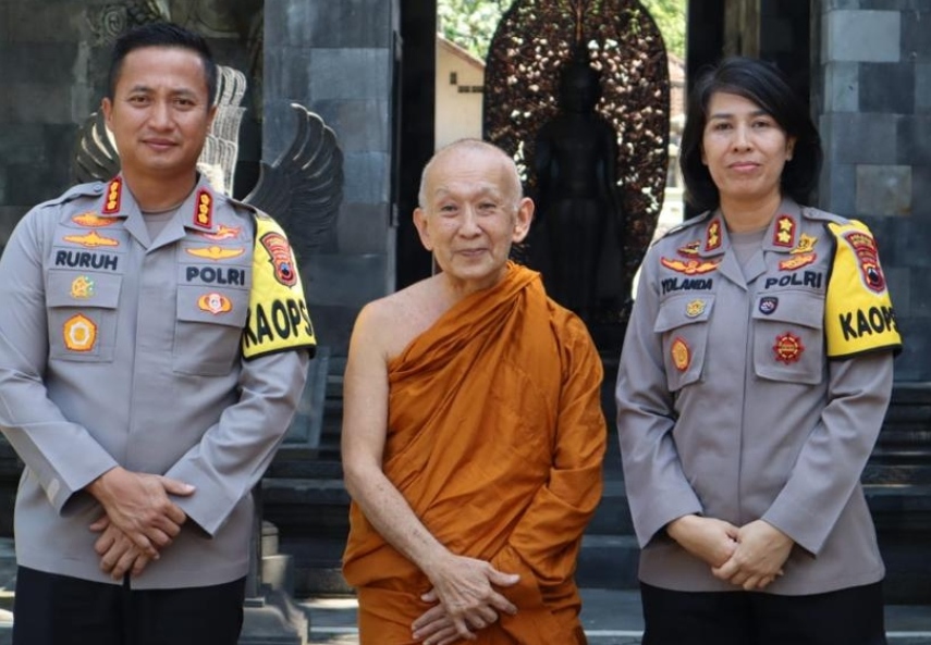 Jst-news.com |Polresta Magelang – Polda Jateng- Dalam rangka menjalin dan memperkuat hubungan tali silaturahmi, Kapolresta Magelang, Polda Jawa Tengah Kombes Pol Ruruh Wicaksono, S.I.K., S.H., M.H. mengunjungi tokoh agama. Kali ini dilaksanakan di komplek Vihara Candi Mendut, Rabu (24/05/2023). Turut serta berkunjung, Kapolres Magelang Kota AKBP Yolanda Evalyn Sebayang, S.I.K., M.M., serta di dampingi Kasat Lantas Kompol Agus Santoso, S.E., S.I.K., Kasat Reskrim Polresta Magelang Kompol Rifeld Constantien Baba, S.I.K., M.H., dan Kapolsek Mungkid AKP Joko Hero A., S.Pd, M.M. Kedatangan Kapolresta Magelang dan Kapolres Magelang Kota beserta rombongan disambut hangat oleh Kepala Vihara Mendut, YM Bhante Sri Pannavaro Mahathera….