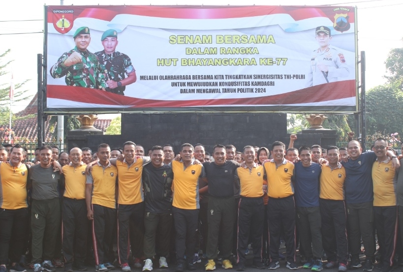 Jst-news.com |Polres Blora – Polda Jateng – Guna meningkatkan sinergitas TNI-Polri, Polres Blora menggelar Senam bersama Kodim 0721/Blora dan yonif 410/Alugoro di Makodim 0721/Blora, Jum’at (26/5/2023). Kapolres Blora AKBP Fahrurozi, S.I.K., M.M., M.H., mengatakan senam bersama ini merupakan wujud nyata TNI-Polri saling bersinergi, dan juga rangkaian Hari Bhayangkara yang puncaknya jatuh pada tanggal 1 Juli esok. “Kita harapkan dengan adanya kegiatan bersama seperti ini ke depannya soliditas dan sinergitas TNI-POLRI terus terjalin dengan baik dalam menjaga Kamtibmas,” ujar AKBP Fahrurozi. Selain itu kegiatan Senam bersama ini juga meningkatkan kekompakan dan kerja sama yang baik antara TNI-POLRI Kabupaten Blora. “Berolahraga bersama…