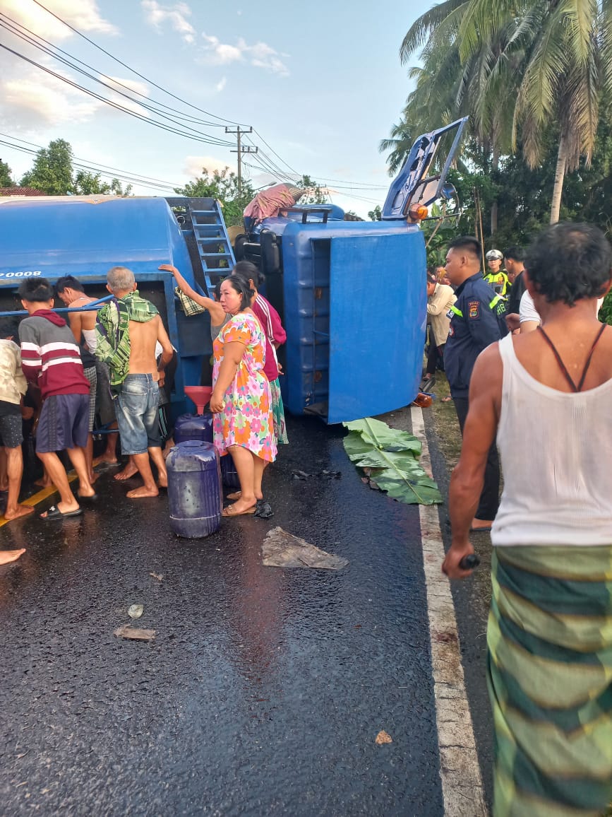 Sebuah Truck Tangki Bermuatan Solar Terguling Di Jalan Teba Bunuk Kobar
