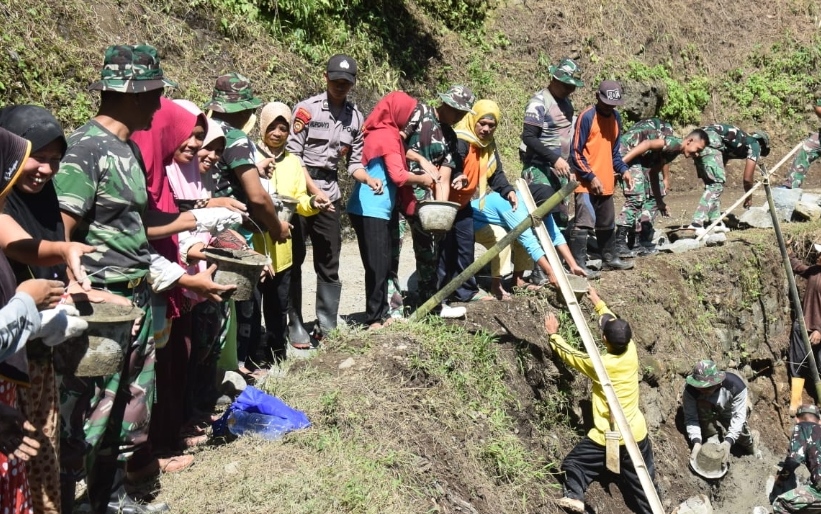 Luar biasa, Antusias Warga Wangkelang Ikut Gotong-royong dilokasi TMMD