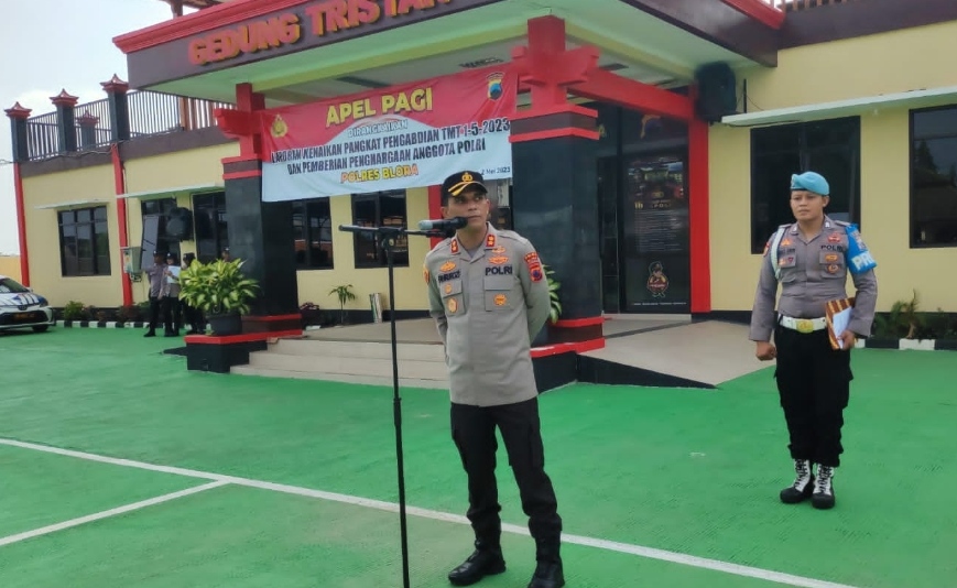 Jst-news.com |BLORA-Selasa, (02/05/2023) bertempat di halaman belakang Mapolres Blora Polda Jawa Tengah telah dilaksanakan kegiatan apel pagi yang dirangkaikan dengan Laporan Kenaikan Pangkat Pengabdian TMT 1-5-2023 Dan Pemberian Penghargaan Anggota Polri Polres Blora. Kegiatan dipimpin langsung oleh Kapolres Blora AKBP Fahrurozi,SIK,MM,MH. Hadir dalam kegiatan tersebut Pejabat Utama Polres Blora, Kapolsek Jajaran Polres Blora, Para Kanit, Kasi, Dan Perwira Staf Polsek dan Polres Blora Serta Anggota Polres Blora Dan Polsek Jajaran dan PNS Polres Blora. Dalam arahannya Kapolres Blora menyampaikan ucapan selamat kepada anggota yang mendapat kenaikan pangkat pengabdian yaitu Kasubbag Dal Gar Bagren Polres Blora AKP Suwarno,SH yang mendapat kenaikan…