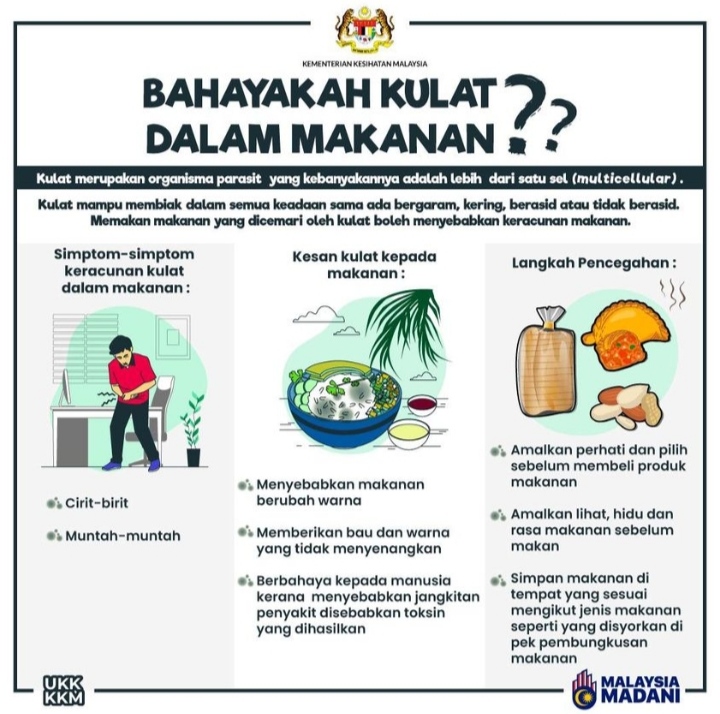 JST-News.com|Informasi Internasional -Malaysia, News@Kulat dalam makanan boleh memberi kemudaratan kepada kesihatan. Pengambilan makanan yang tercemar dengan kulat akan mendatangkan gejala-gejala yang tidak diingini yang boleh memudaratkan kesihatan. Selain itu, kulat dalam makanan boleh menyebabkan perubahan berlaku pada makanan dan menjejaskan kualiti makanan. Oleh itu, langkah pencegahan perlu diamalkan bagi memastikan makanan tidak dicemari kulat. Suatu makanan akan lebih nyaman dan damai menjadikan sebuah dari proses makanan baik dan makanan buruk buat perkembangan masyarakat luas di-Malaysia. Dalam bentuk kemudaratan masuk dan berkelas tergantung pada phase kualitas makanan itu dikomsumsi oleh tubuh manusia. Semoga adanya penjelasan ini, dapat dipahami serta dimengerti oleh…