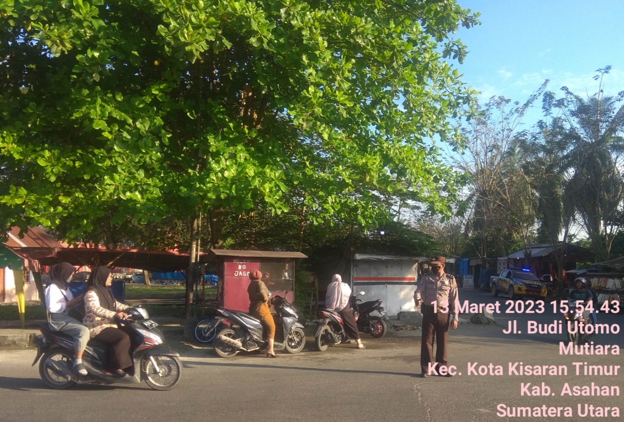 Berikan Kenyaman Masyarakat, 2 Personel Polsek Kota Kisaran Gatur Pos Padat Sore