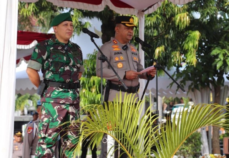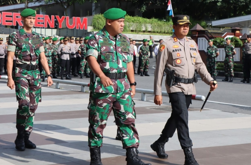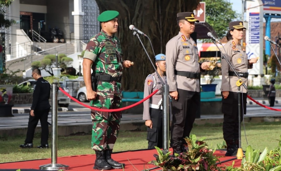 Polres Klaten dan Kodim 0723/Klaten Melaksanakan Apel Gabungan Sinergitas TNI-Polri di Alun-alun Klaten