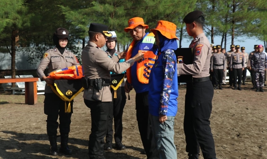 Polres Batang Bagikan 30 Life Jacket pada Relawan dan Aktivis Pariwisata di Kawasan Pantai