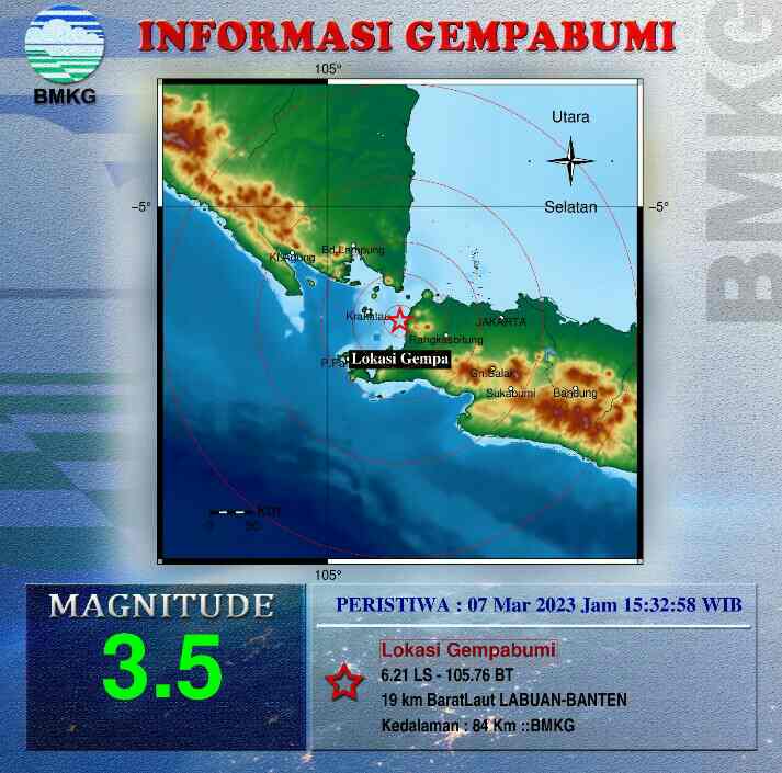 Jst-News.Com – Jakarta, Kejadian dan Parameter Gempabumi, hari Selasa 07 Maret 2023 pukul 14.31.57 WIB wilayah Pesisir Barat, Lampung diguncang gempa tektonik. Hasil analisis BMKG menunjukkan gempabumi ini memiliki parameter update dengan magnitudo M5,0. Episenter gempabumi terletak pada koordinat 6,47° LS ; 103,90° BT, atau tepatnya berlokasi di laut pada jarak 156 Km arah BaratDaya Pesisir Barat, Lampung pada kedalaman 53 km. Jenis dan Mekanisme Gempabumi: Dengan memperhatikan lokasi episenter dan kedalaman hiposenternya, gempabumi yang terjadi merupakan jenis gempabumi dangkal akibat adanya aktivitas subduksi lempeng Indo-Australia. Hasil analisis mekanisme sumber menunjukkan bahwa gempabumi memiliki mekanisme pergerakan naik ( _thrust fault_…