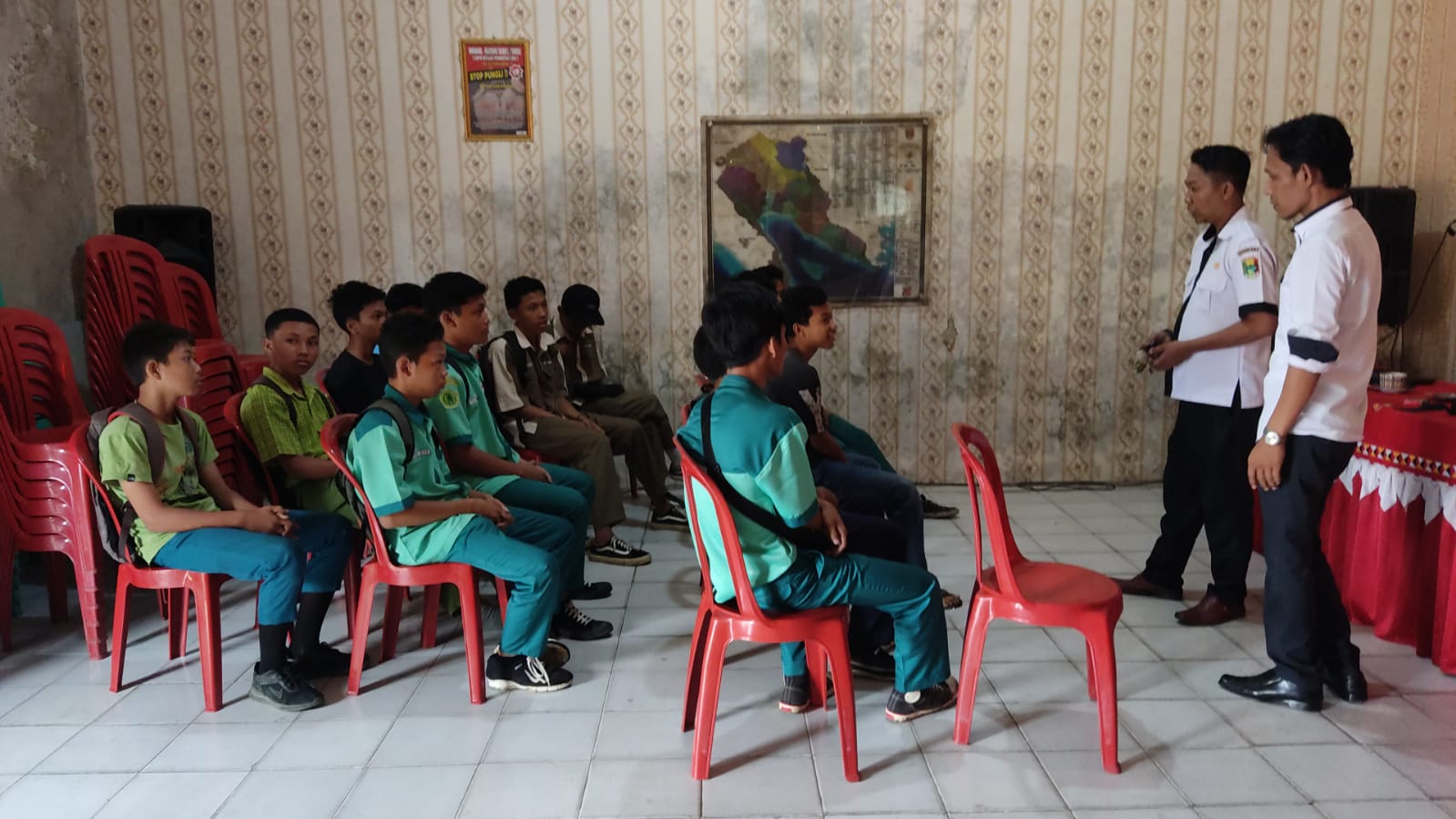 Jst-news.com Tanggamus Kepala dusun ( Kadus ) dua pekon Sinarsemndo kecamatan Talangpadang kabupaten Tanggamus menemukan kumpulan siswa MTS dan SMK yang kedapatan membolos pada jam sekolah , berlokasi di rumah salah satu warga dusun dua, Rabu ( 22/2/23). Menurut Kadus dusun dua ( Komarudin ) saat didatangi, para siswa tersebut sontak kaget. Sikap Kadus tegas namun humanis, kemudian mengumpulkan para siswa ke balai pekon Sinarsemndo untuk didata dan diberi peringatan sekaligus imbauan agar tidak mengulangi perbuatannya. ” Adik-adik semua kita ke balai pekon dahulu, supaya pihak sekolah dan orang tua kalian mengetahui kalian bolos sekolah, supaya tidak akan mengulangi perbuatan…