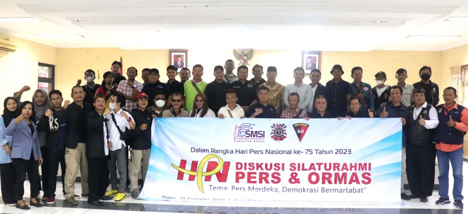 Jst-News. Com. Bekasi. Rabu (15/2/23).- Pewarta PejuangHukum45.com turut hadir di acara Hari Pers Nasional (HPN) 2023 yang ke-75 Tahun di Aula Batalyon D Pelopor Satbrimob Polda Metro Jaya, Cikarang Pusat, Kabupaten Bekasi, Jawa Barat. Hari Pers Nasional (HPN) yang di gelar oleh SMSI Kabupaten Bekasi ini dirayakan bersama dengan Aliansi Ormas Bekasi, Batalyon D Pelopor Satbrimob Polda Metro Jaya, Perkumpulan Penyandang Disabilitas Indonesia (PPDI) dan anggota DPRD Provinsi Jawa Barat, Faizal Hafan Farid, S.E., M.Si. Perayaan HPN tahun ini bertemakan “Pers Merdeka dan Demokrasi Bermartabat”, berbagai acara terlihat padat digelar, mulai sambutan para tokoh, potong kue HPN Bekasi, diskusi pers…