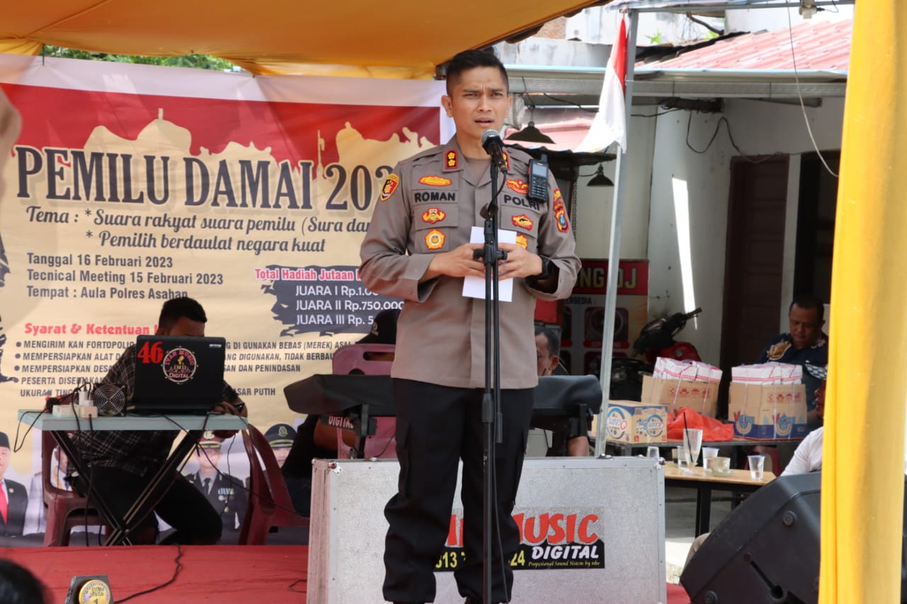 Kapolres Asahan Buka Lomba Mural Pemilu Damai 2024 ASAHAN | Kapolres Asahan AKBP Roman Smaradhana Elhaj, SH, SIK, MH Buka Lomba Mural Pemilu Damai 2024, yang diselenhgarakan oleh Permhimpunan Mahasiswa Asahan Selururuh Indonesia (PERMASI) Kabupaten Asahan Kamis (16/02/2023). Lomba Mural Pemilu Damai 2024 di jalan Cipto Kelurahan Kisaran Kota Kecamatan Kisaran Barat dengan jumlah peserta dan tamu undangan sebanyak lebih kurang 150 orang. Kata Sambutan Bupati Asahan diwakili oleh Sekretaris Kesbang-Pol Kabupaten Asahan Rahman Halim mengucapan penghormatan kepada seluruh tamu dan undangan yang berhadir.Penyampaian permohonan maaf Bahwasannya Bapak Bupati Asahan tidak bisa hadir dikarenakan ada kegiatan beliau yang tidak bisa…