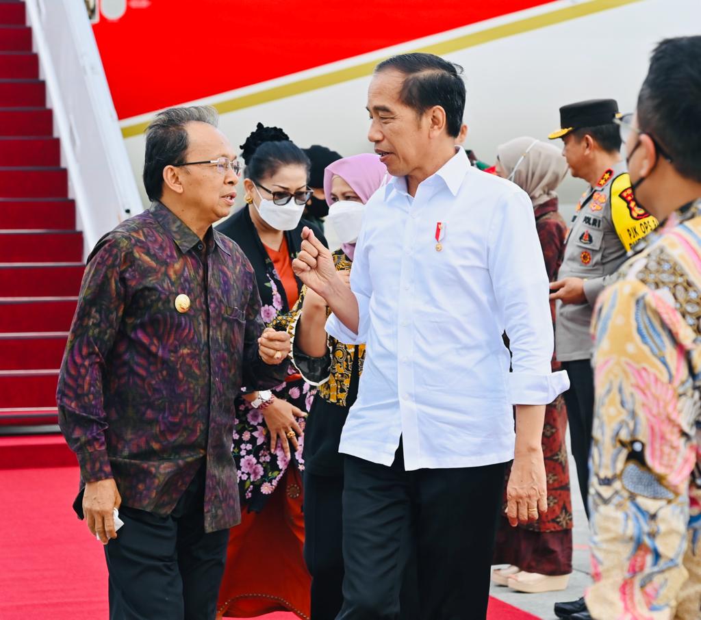 *Tiba di Bali, Presiden Resmikan Pasar Seni Sukawati* Presiden Joko Widodo bersama Ibu Iriana Joko Widodo tiba di Bandara Internasional I Gusti Ngurah Rai, Kabupaten Badung, Provinsi Bali, dengan menggunakan Pesawat Kepresidenan Indonesia-1, Rabu, 1 Februari 2023, pukul 16.50 WITA Tampak menyambut Presiden dan Ibu Iriana, Gubernur Bali I Wayan Koster beserta istri, Pangdam IX/Udayana Mayjen TNI Sonny Aprianto beserta istri, dan Kapolda Bali Irjen. Pol. Putu Jayan Danu Putra. Dari bandara, Presiden dan Ibu Iriana bersama rombongan langsung melanjutkan perjalanan menuju Kabupaten Gianyar. Disana, Presiden hadir untuk meresmikan Pasar Seni Sukawati, Kabupaten Gianyar. Usai peresmian, Presiden dan Ibu Iriana…